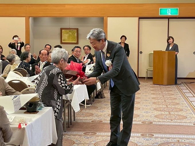 田中千代子さんに満百歳の敬老祝い状を贈呈