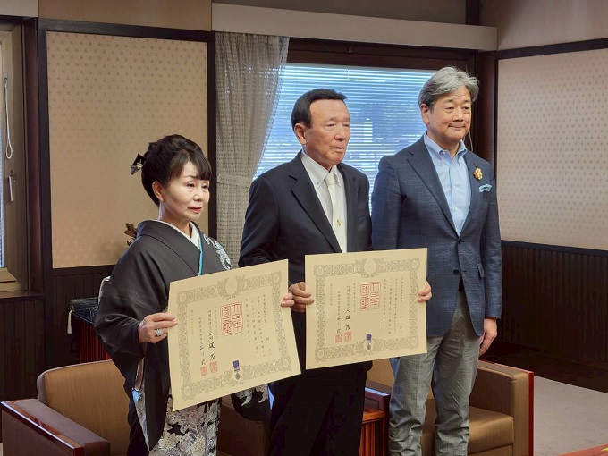 東仁郎さん、順子さん夫妻に紺綬褒章を伝達(※写真あり)