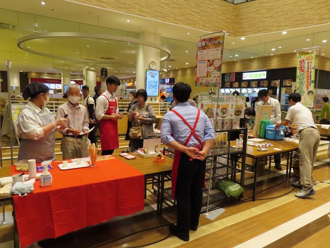 イベントでは減塩食品の紹介や減塩メニュー「ブロッコリーとたまごのデリ風ごまマヨサラダ」の試食を行いました。