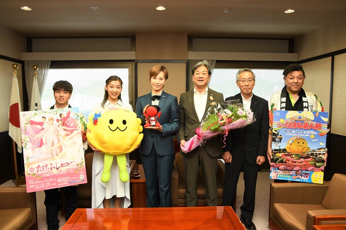 友好都市・福井県越前市から「第74回2025たけふ菊人形」と「OSK日本歌劇団たけふレビューショー」のPRのため、実行委員会とOSKの皆さんが田中市長と中村都市提携委員会長を訪問されました。