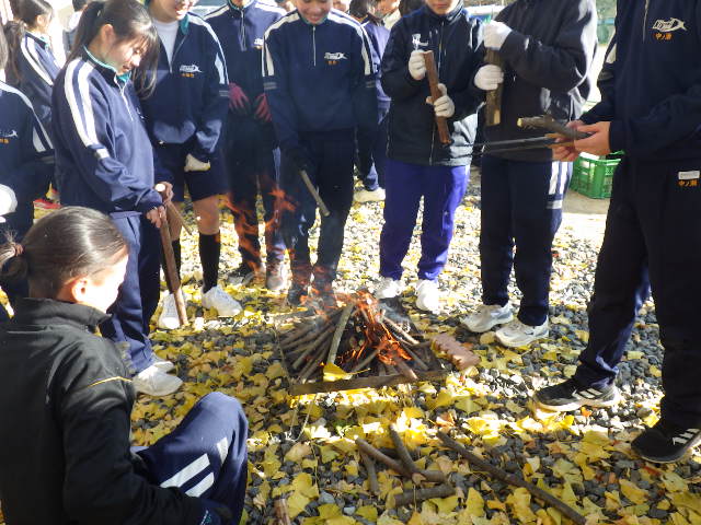 授業内容を振り返る中で、生徒からは、木の枝など森にあるものを使ったゲームや火をおこす体験をとおして、火のありがたさ、チームワークの大切さを実感したとの感想が述べられました。