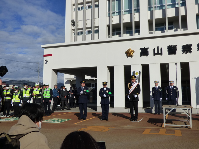 12月10日水曜日には、高山警察署で地域安全・交通安全合同出発式を行い、一日警察署長の根尾昂選手が、詐欺被害防止と交通事故防止を呼びかけました。